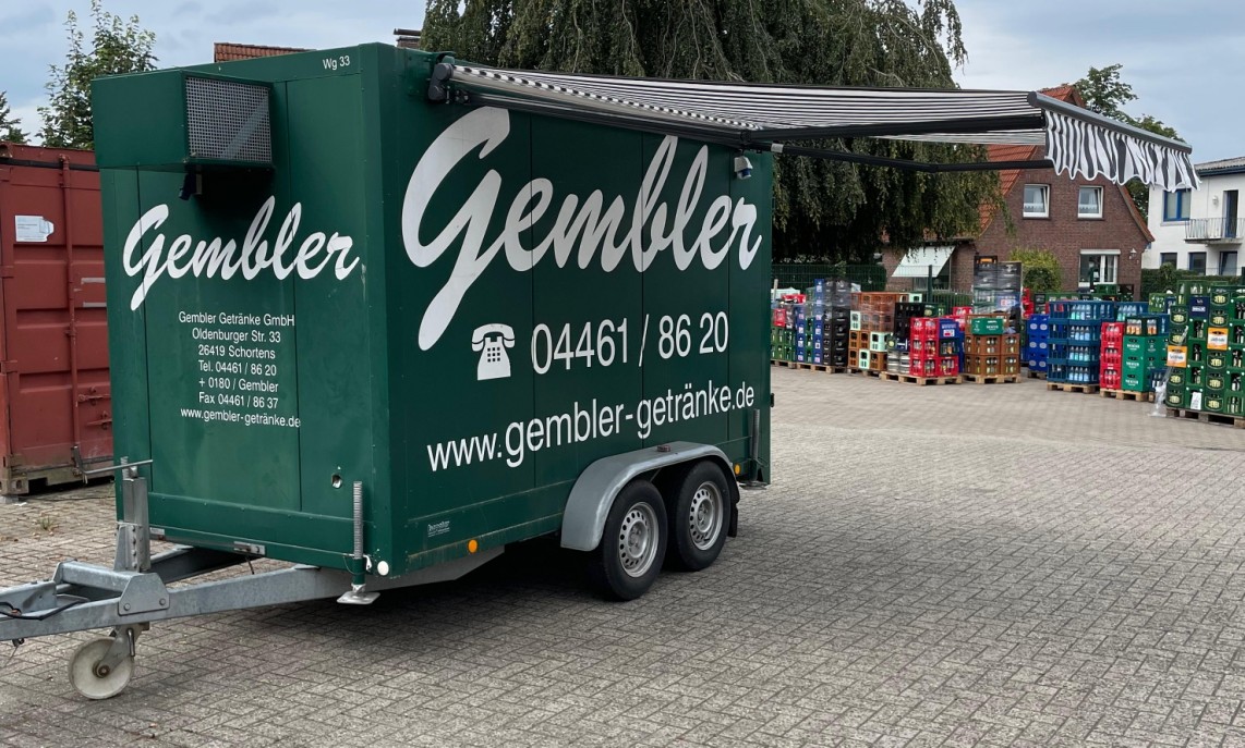 Je nach Verfügbarkeit können sie auch einen Kühlanhänger mit elektrisch ausfahrbarer Markise bekommen.