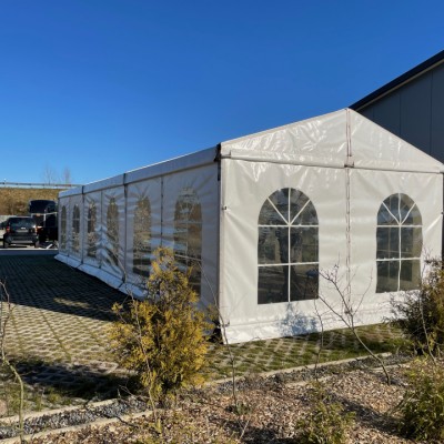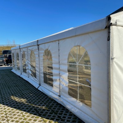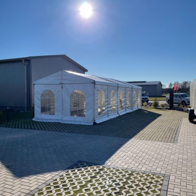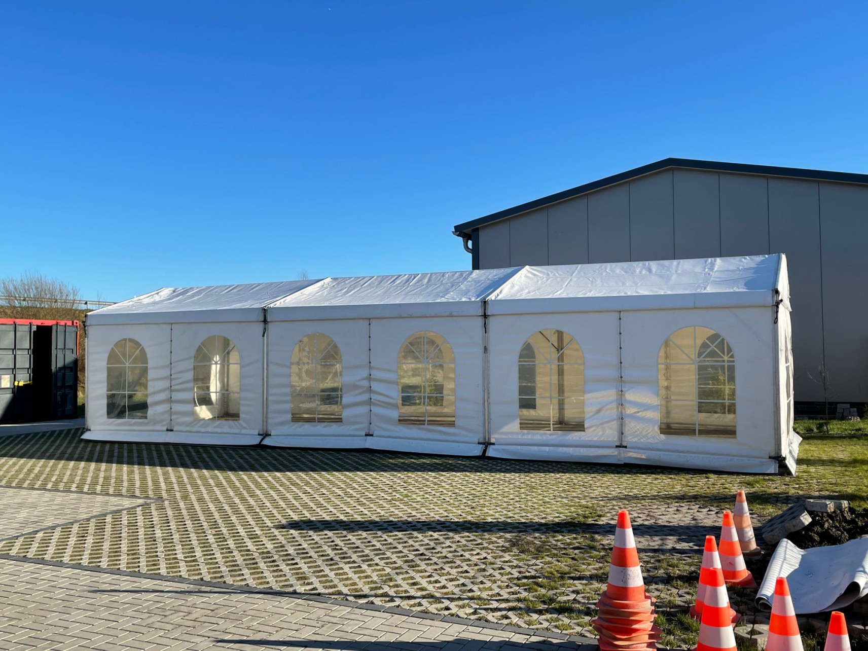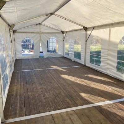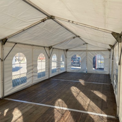 Je nach Anforderung, können wir Ihnen das Zelt als 4x4 Meter, 4x8 Meter oder auch als 4x12 Meter Version, jeweils mit festen Fussboden, aufbauen.